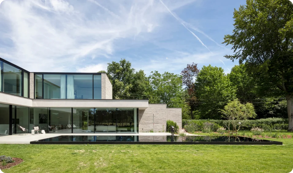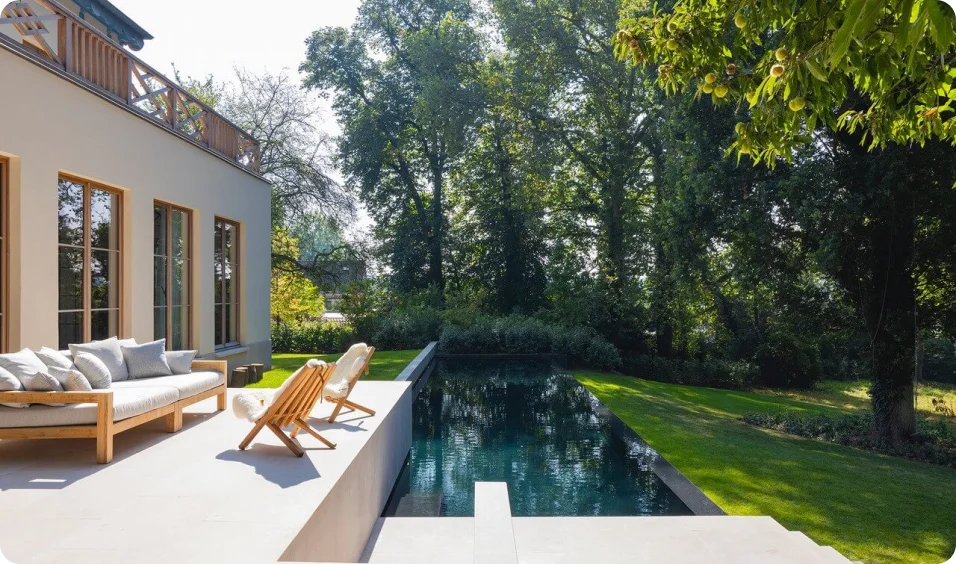 Vi elsker det når arkitekter og bassengbyggere designer et evighetsbasseng. De rene linjene passer til huset og hagen.