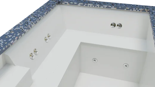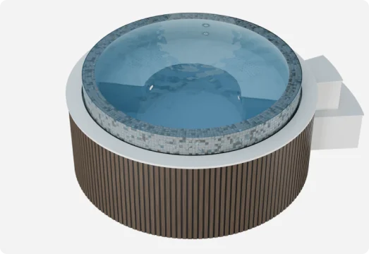 Våre velværebassenger/spa er spesiallaget. Vi bruker unike materialer, design, skjære- og sveiseteknikker som lar oss tilpasse form, størrelse og funksjoner ned til siste centimeter for deg.