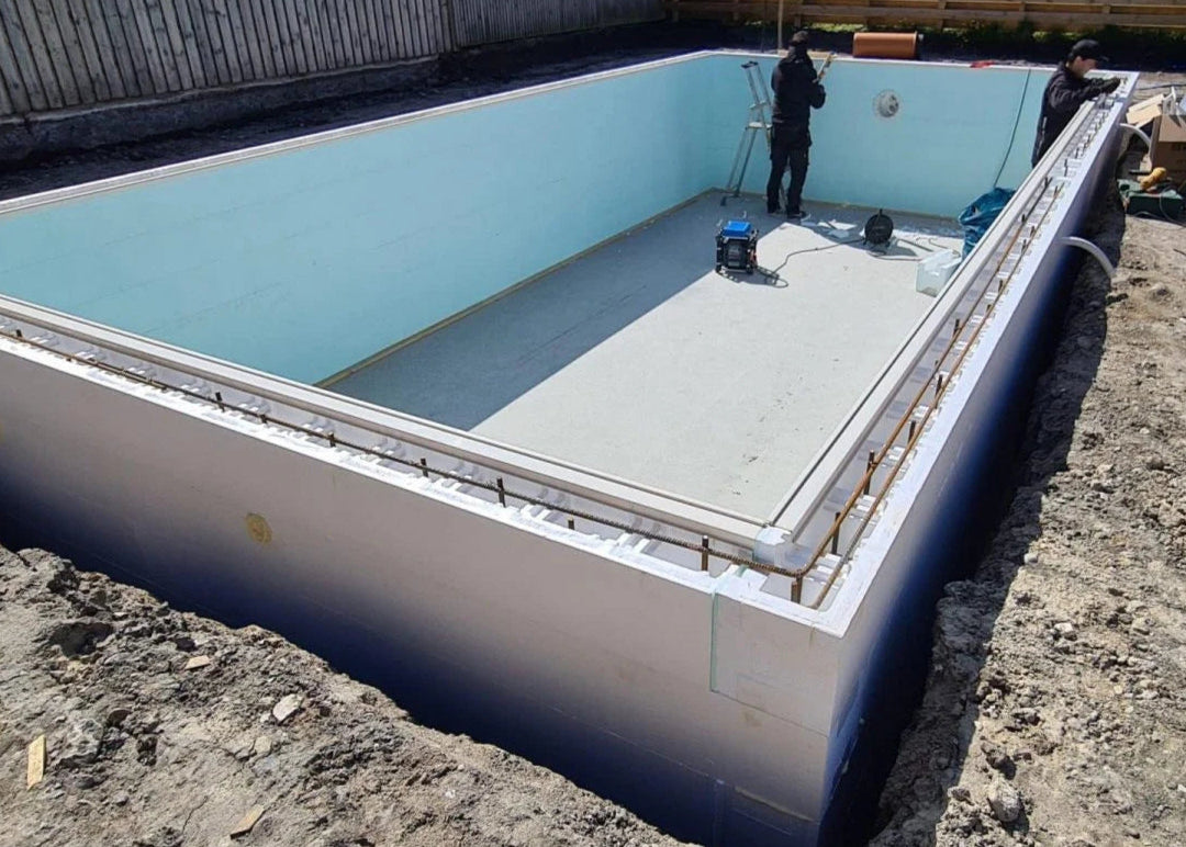 Innsiden av bassenget er dekket med en duk, tilgjengelig som en snap-in duk eller en punktsveiset duk. Velg farge på duken etter dine ønsker, men se våre inspirasjonsbilder, da fargen på vannet endres med forskjellige farger på duken. I en hvit duk blir bassengvannet lyseblått, i en lys grå blir bassengvannet blått/grønt, osv.