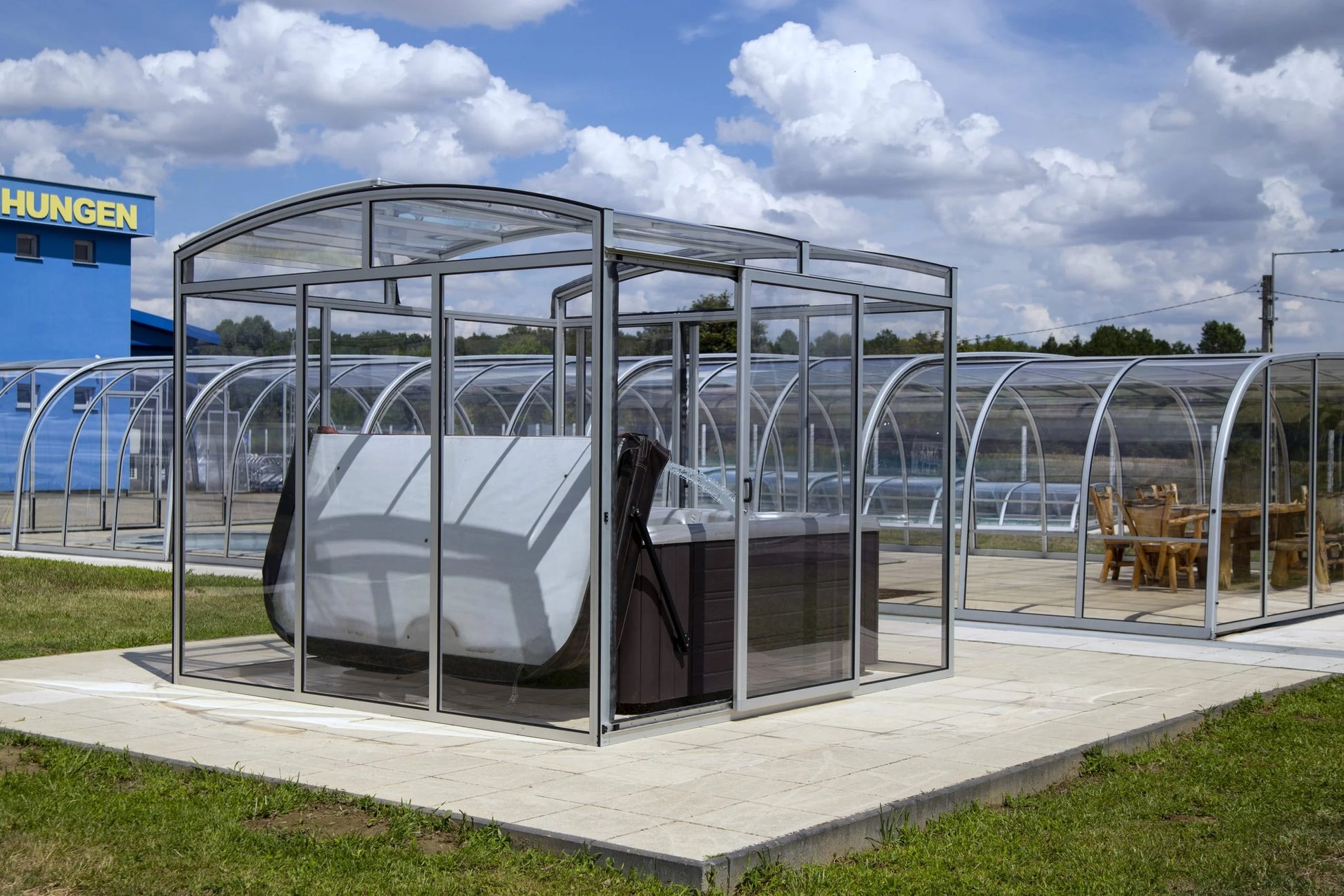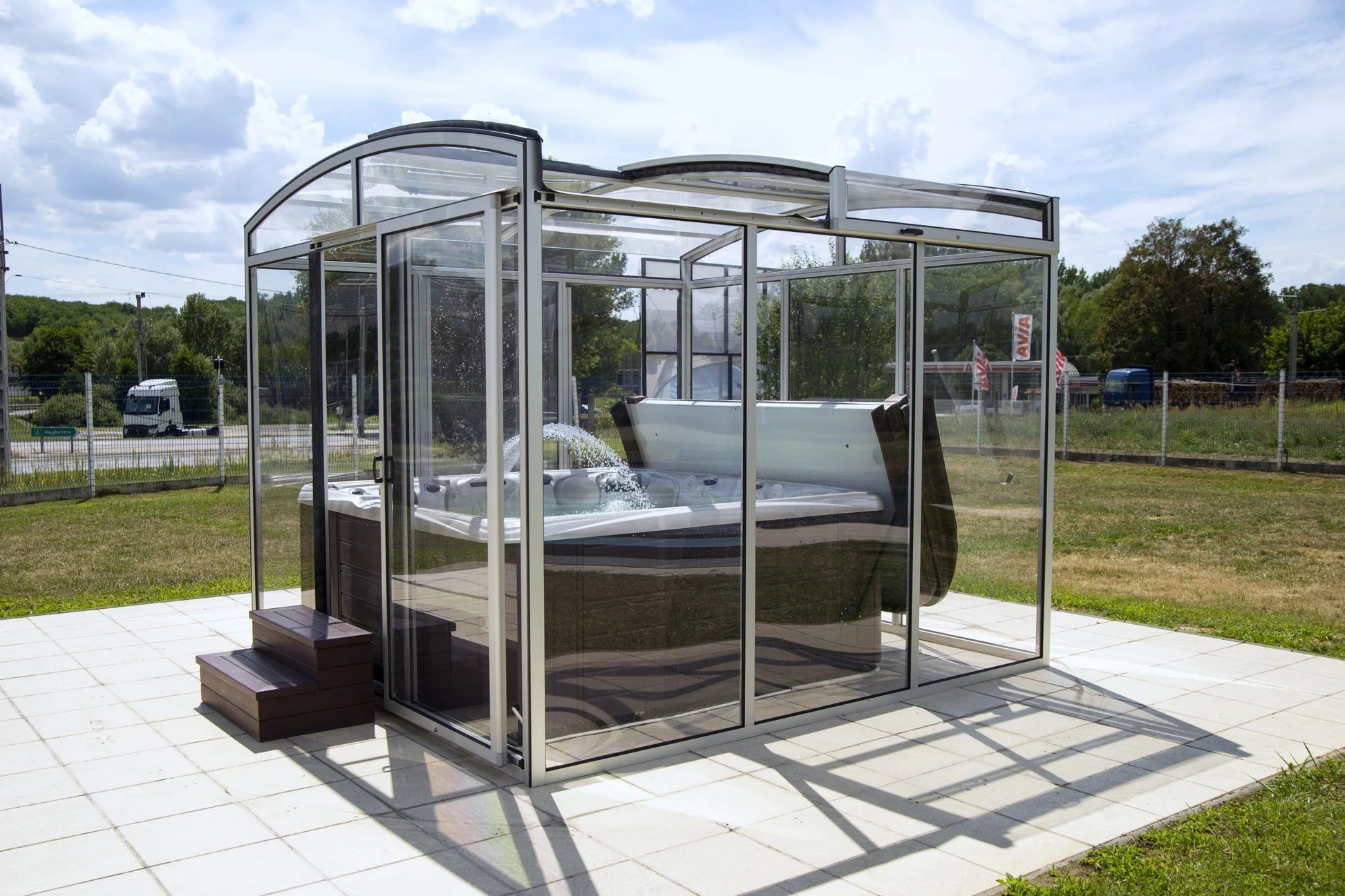 Spa-taket har 2 sidedører, hvis plassering kan bestemmes + 1 skyvedør til taket.